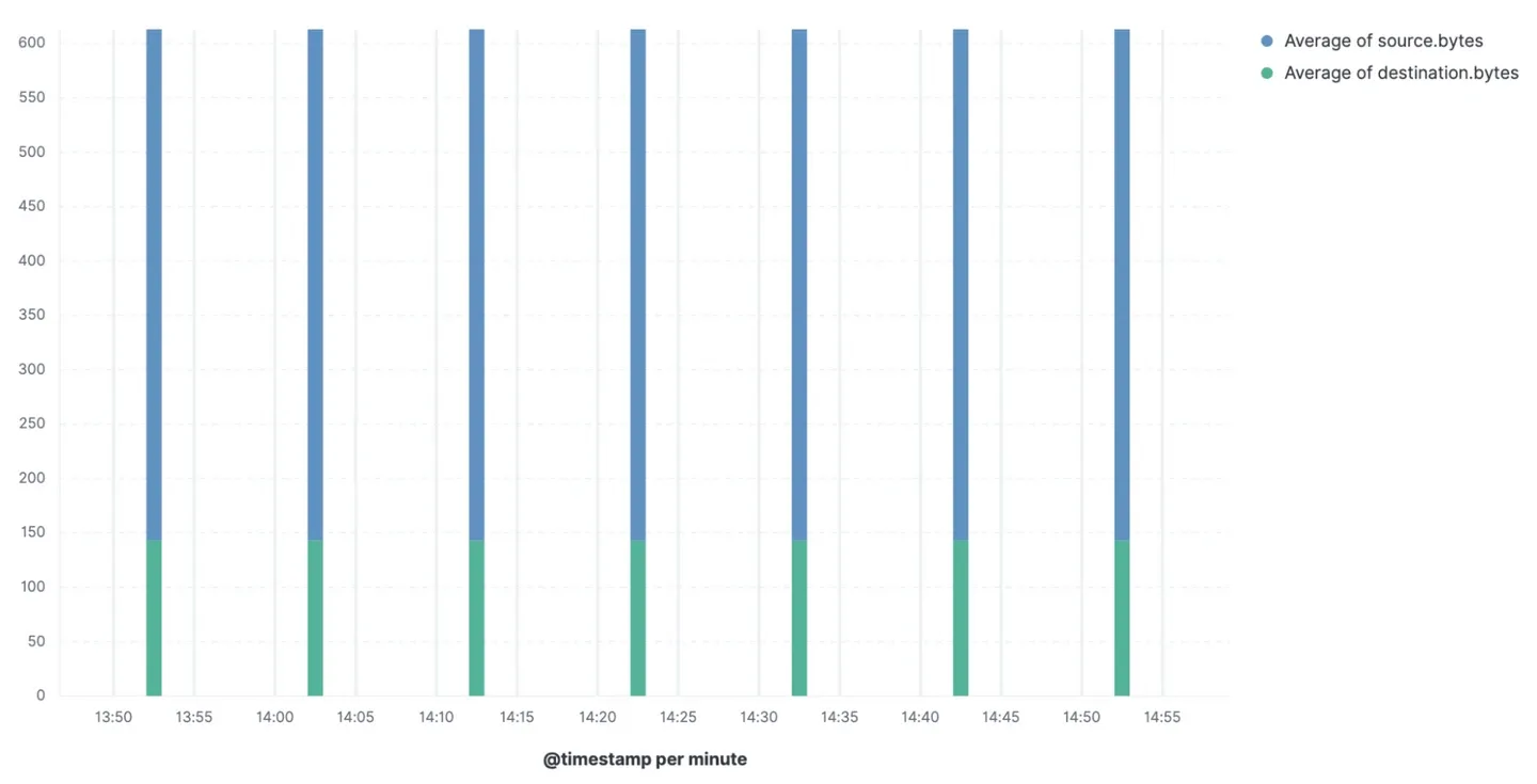 Lets look at this amazing example of beaconing malware from Elastic. Some beacon consistently at an interval of 10 minutes as the source, the payload size, and the destination remain the same. This makes it easy to detect using simple statistical methods.